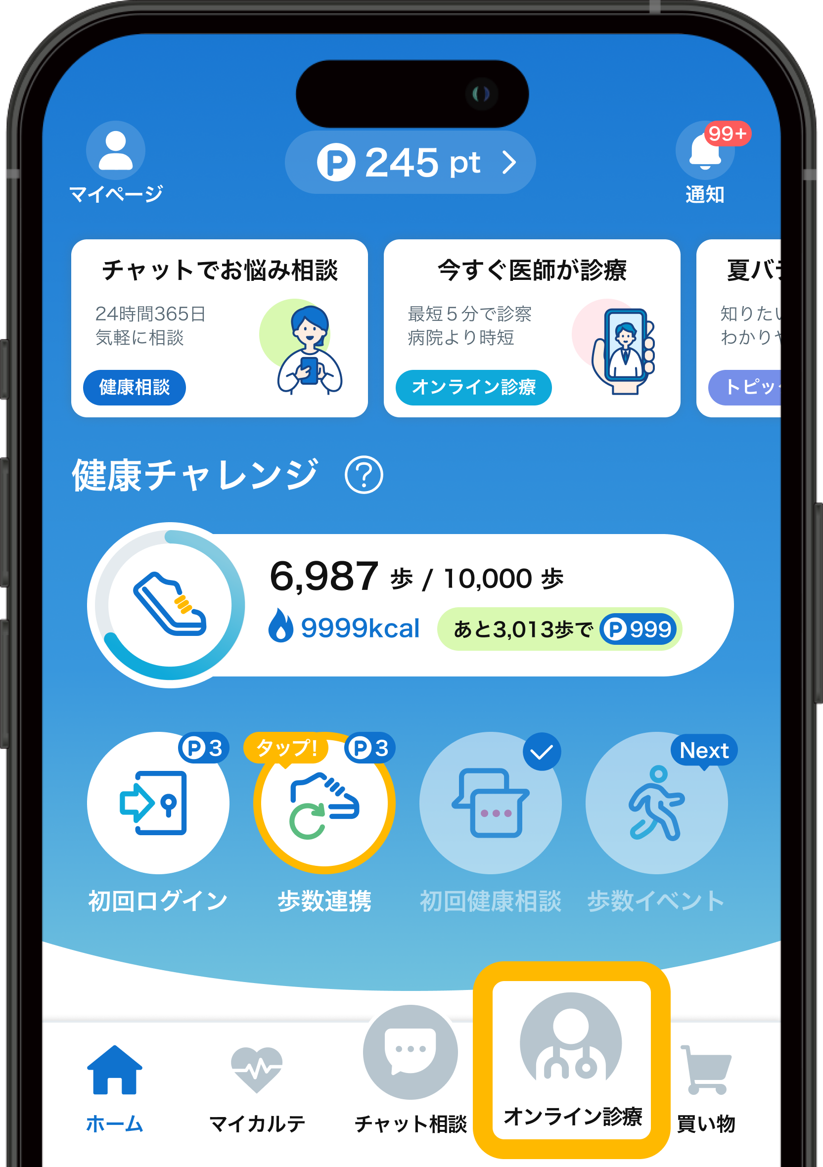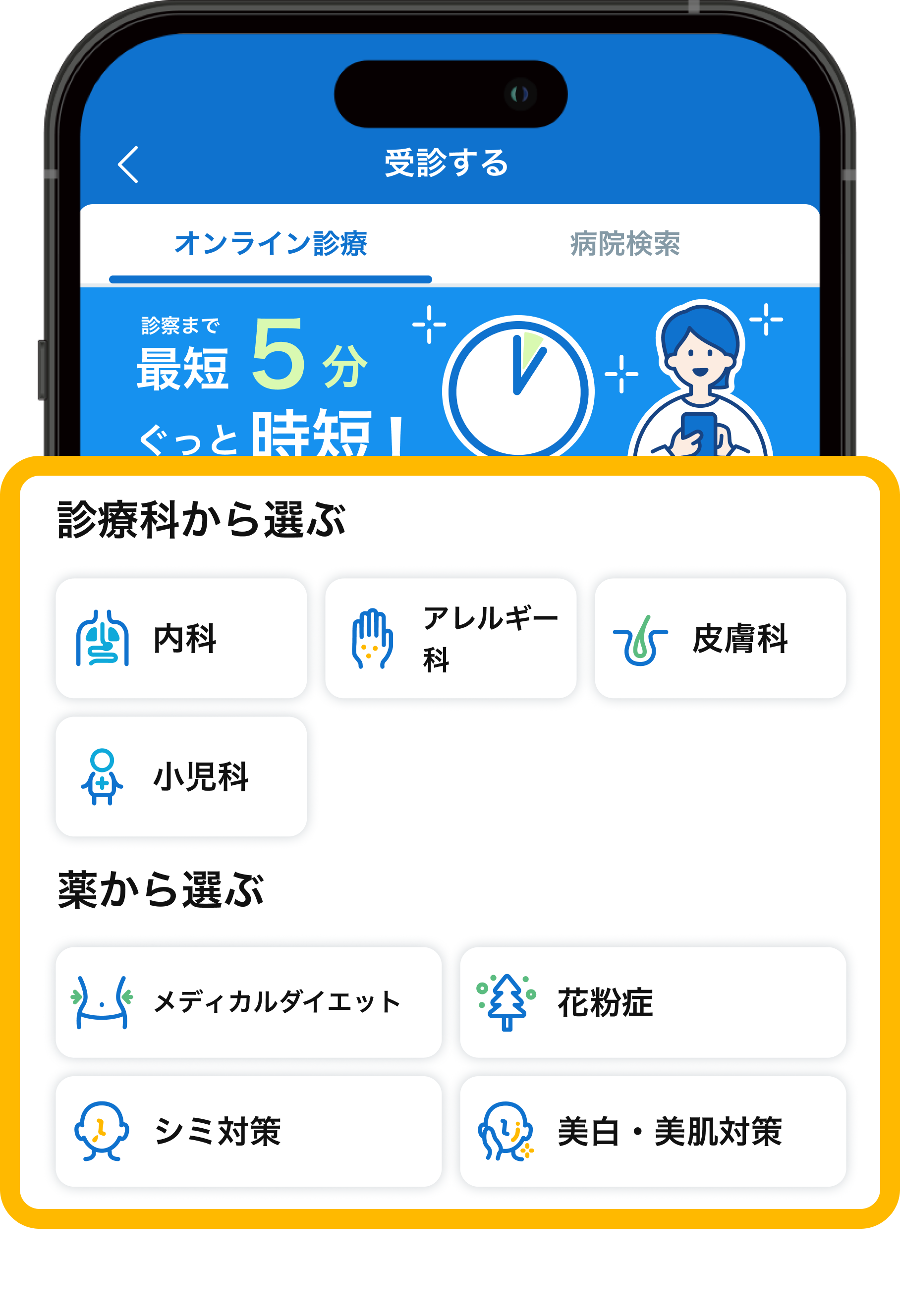 スマートフォンを使って、自宅等にいながら医師の診察や薬の処方を受けられます。